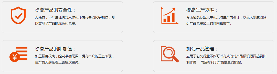 近年来,随着高新技术的迅猛发展,激光技术在包装领域的开发应用也受到了人们的重视和关注,通过激光加工不仅可以提高包装行业的技术水平,而且还提高产品的档次和附加值。为了能够适应现在包装行业的加工需求荣科激光针对包装行业的加工特点,打造了适用于现在包装行业加工需求的激光解决方案。该解决方案采用计算机软件和机电一体化控制,可以实现自动控制与自动调节,同时还可以非常简单的集成到生产线中,实现整个加工系统的自动化。